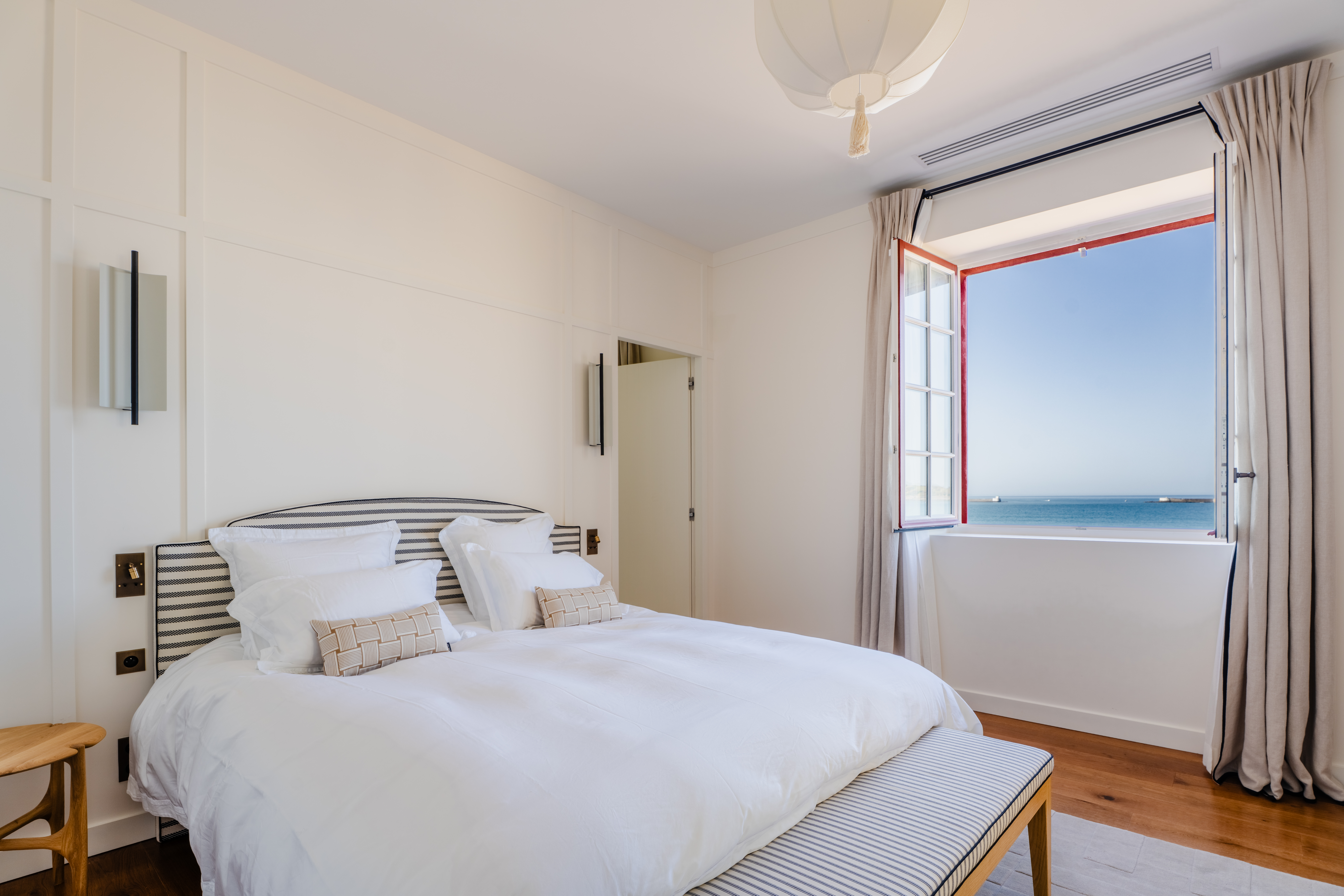 Les neuf suites, dont certaines dévoilent des panoramas spectaculaires sur la baie de la Concha ou le port de Saint-Jean-de-Luz, rivalisent de confort et d’élégance, dignes des plus prestigieuses adresses hôtelières. Un appartement indépendant complète l’ensemble, permettant d’accueillir famille et invités en toute intimité.
