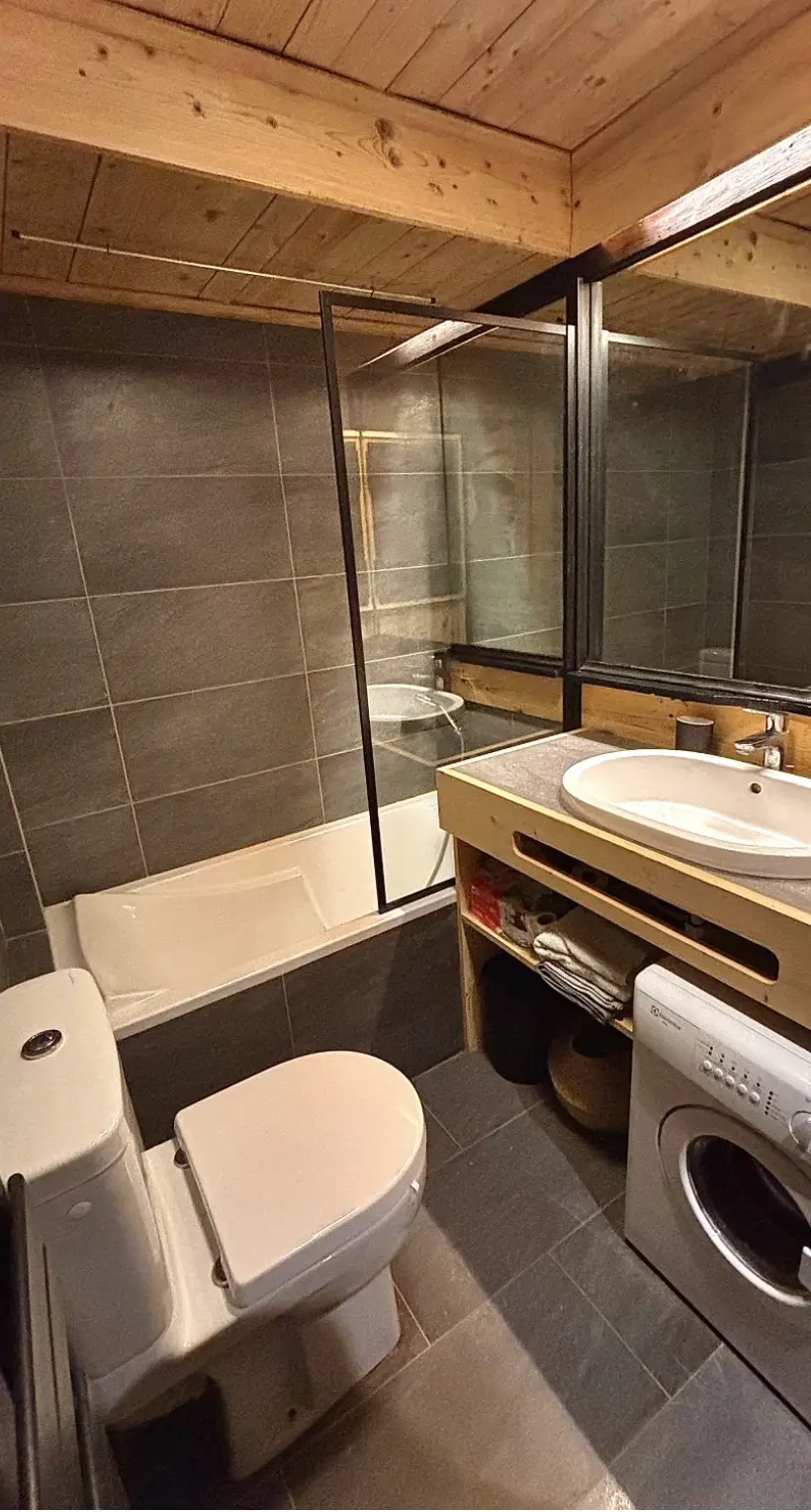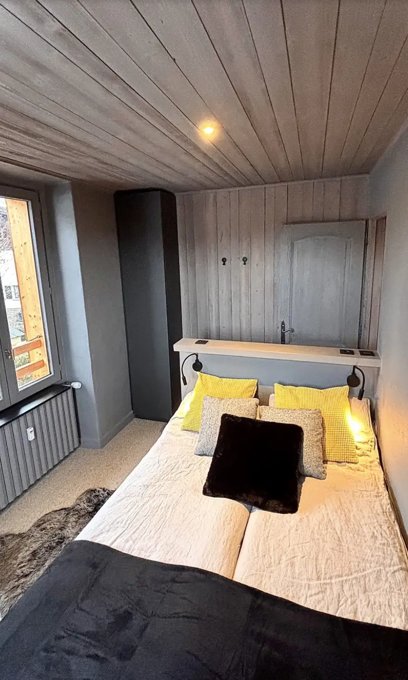L’appartement offre une chambre confortable ainsi qu’une chambre-cabine double, et dévoile un agréable espace de vie réunissant salon et salle à manger dans une atmosphère chaleureuse et contemporaine. Le séjour se prolonge par un balcon dominant les toits du village, avec une vue ouverte sur le Val d’Arly.
