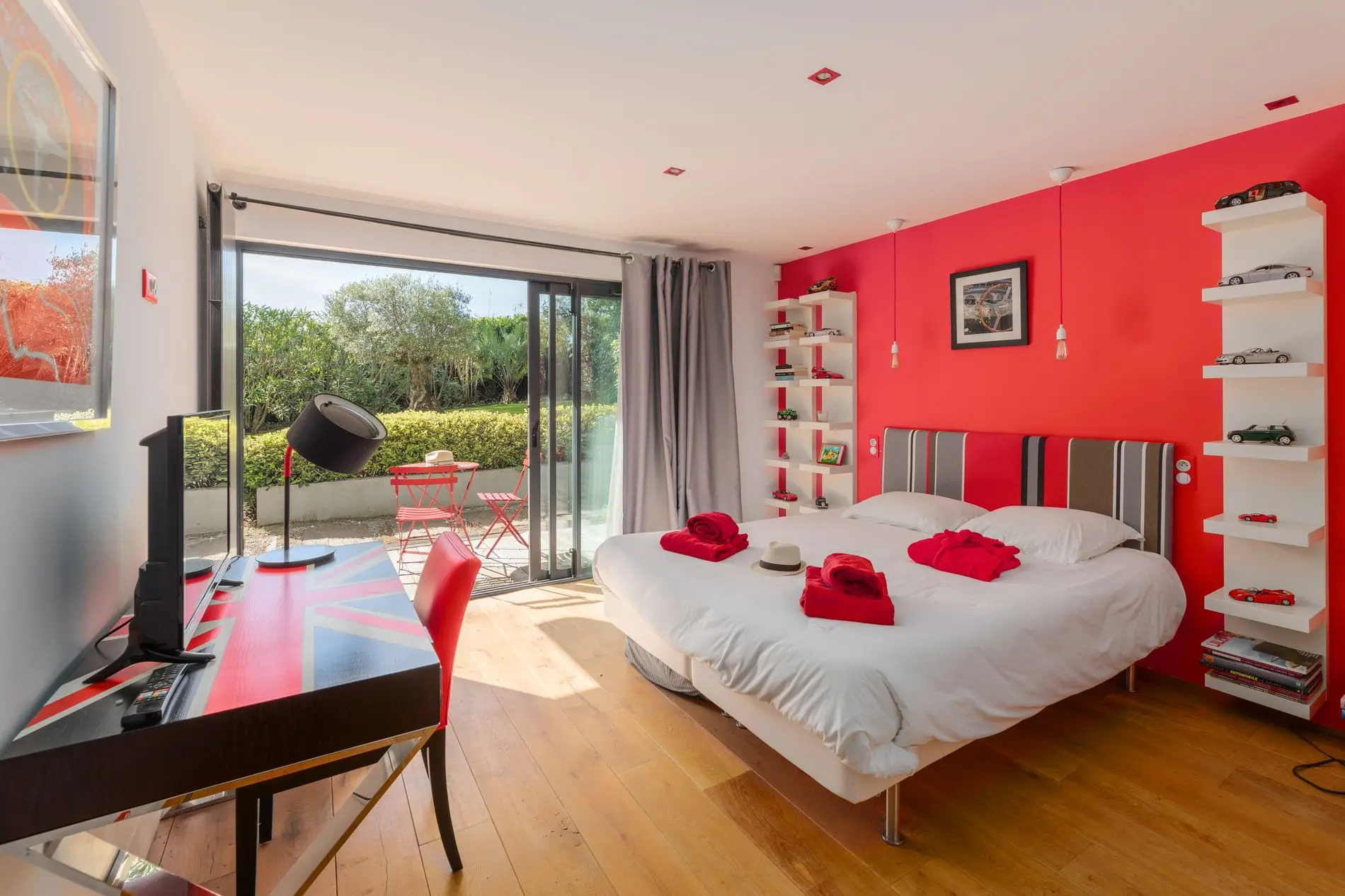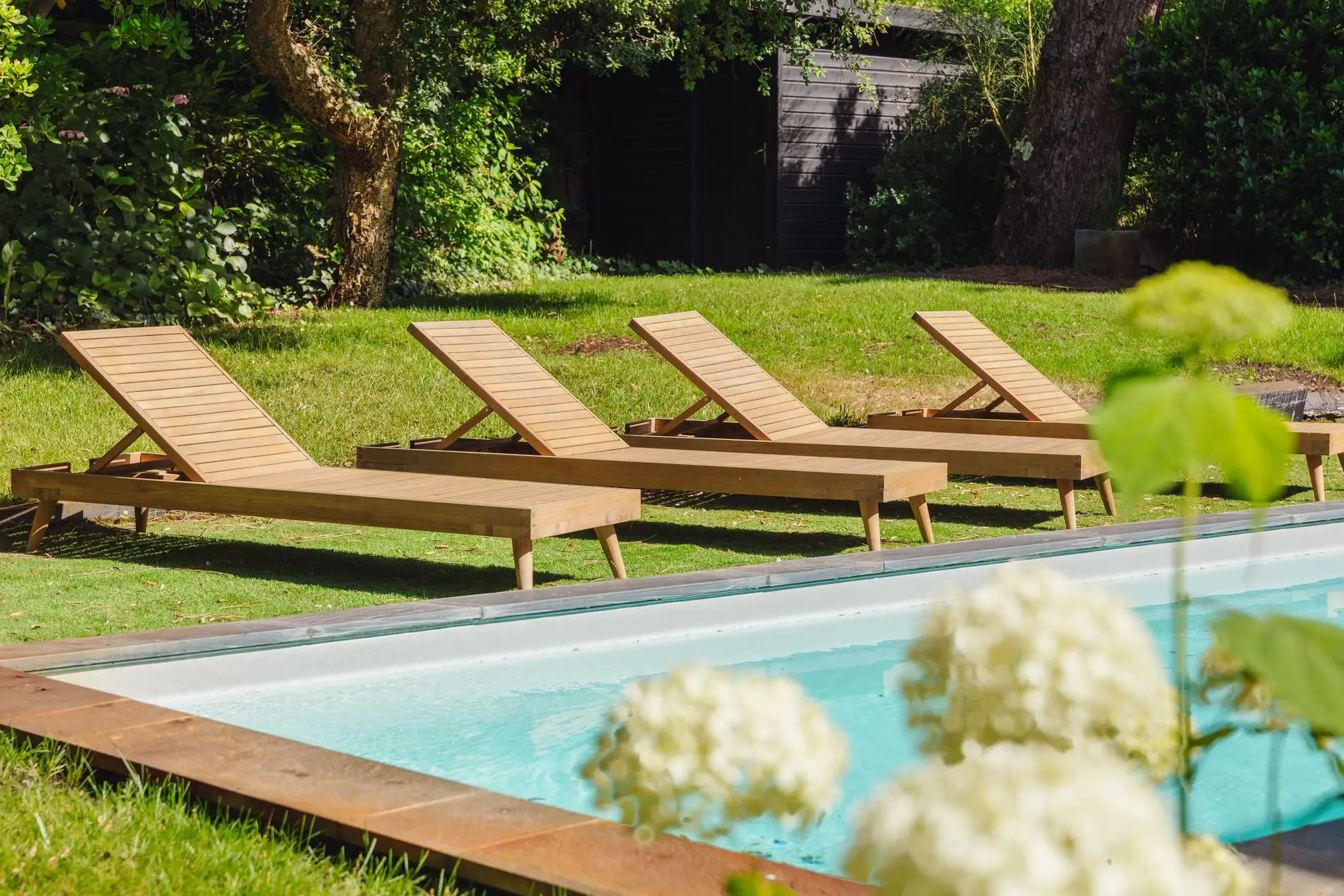 parcelle de 1100m2. Elle dispose d’une belle piscine chauffée, de nombreuses terrasses et d’un pool